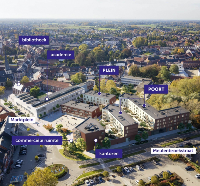 Vandaag zijn er op Nieuwe Markt nog mooie kantoren te koop. Hun ligging in het centrum van Hamme én op een zichtlocatie ter hoogte van het rondpunt en het Marktplein is de grootste troef. De bereikbaarheid is vlot en er is altijd parking in de ondergrondse parkeergarage.